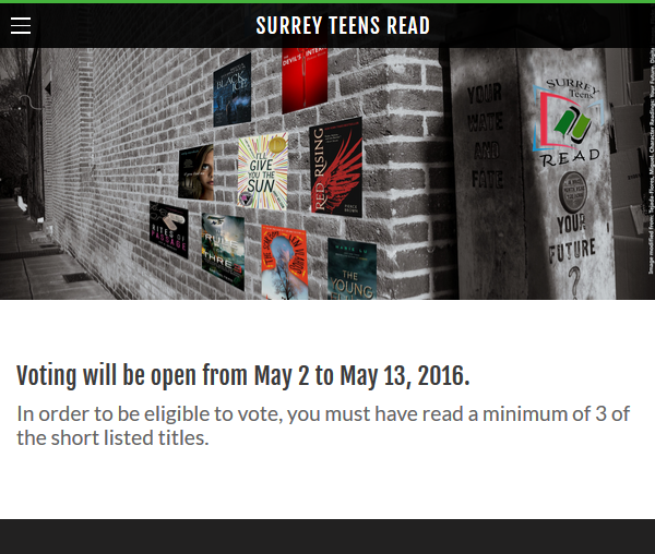 Voting opens May 2nd for the Surrey Teens Read 2016 “Book of the Year.”