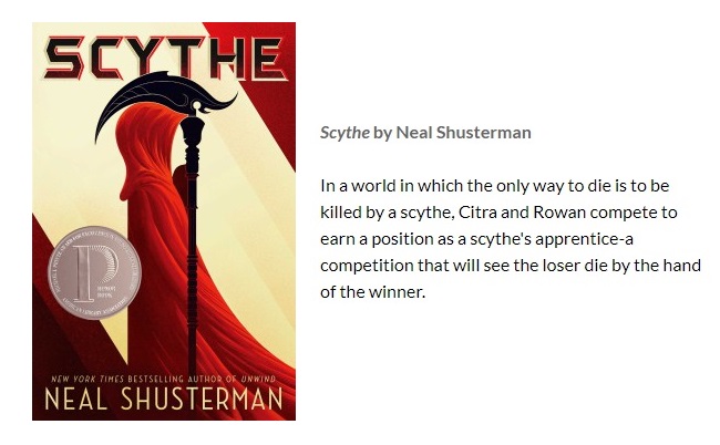 Come down to the School Library to get your copy of Scythe today! Find out more about Scythe and all the Surrey Teens Read nominated titles for 2017-2018: go to surreyteensread.weebly.com