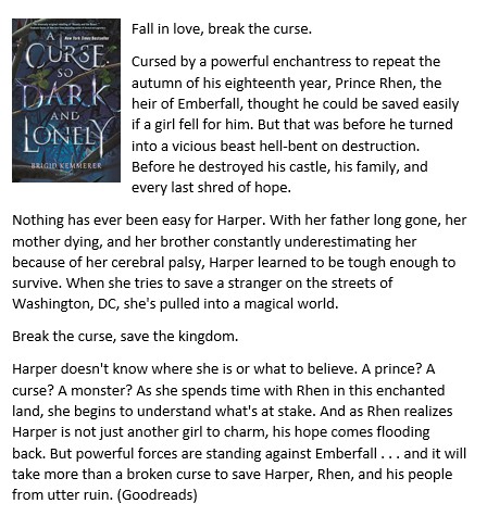 Come down to the School Library to have a look at A Curse Dark and Lonely by Brigid Kemmerer, and the other Surrey Teens Read selections for 2020-2021. You can also go online and borrow many of them as e-Books and/or Digital Audiobooks.