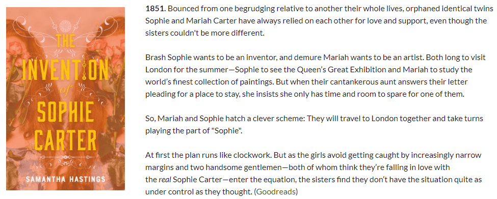 Surrey Teens Read has a wonderful list of titles for students to enjoy. This week we look at The Invention of Sophie Carter by Samantha Hastings.