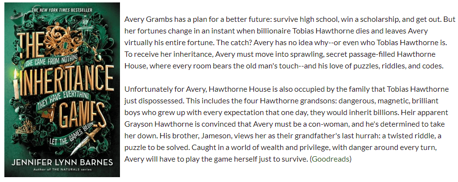 This year’s list of Surrey Teens Read nominees is rife with compelling stories. This week we look at The Inheritance Games by Jennifer Lynn Barnes.