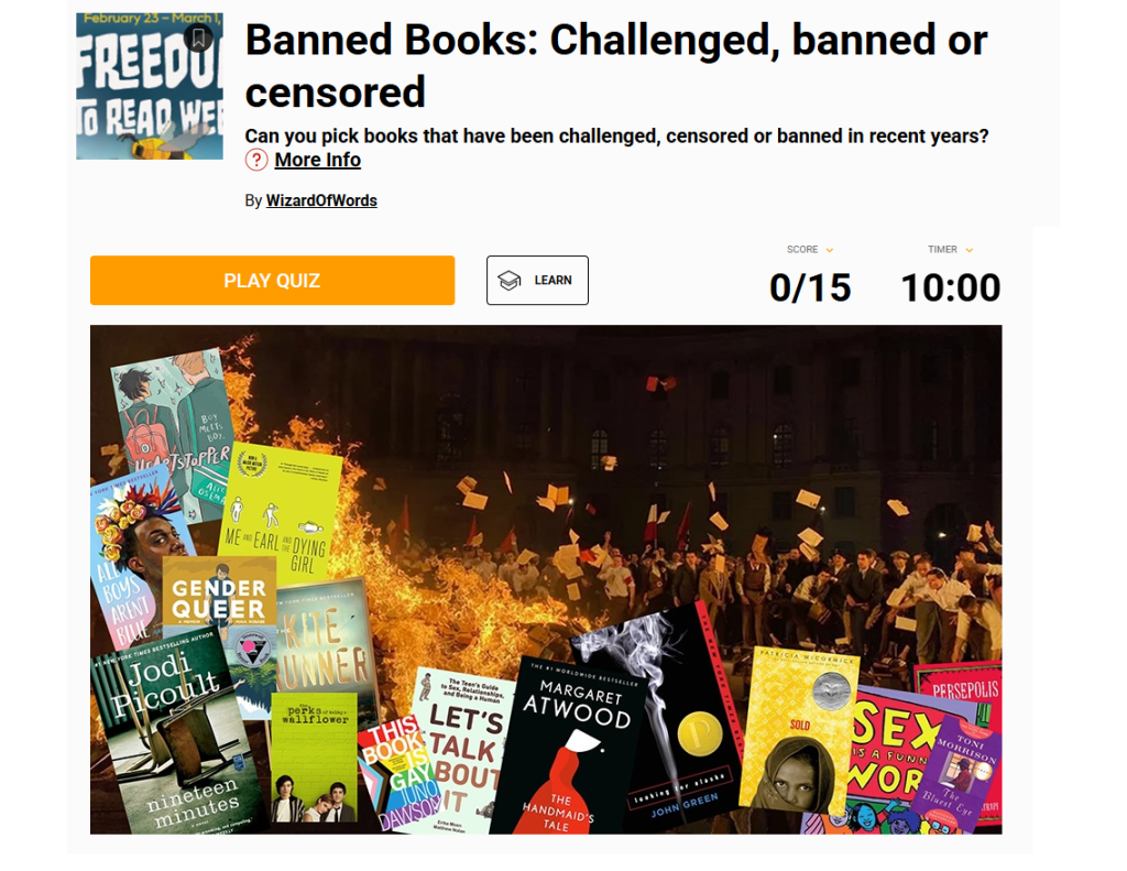 Play a “Sporcle” that asks you to show off your knowledge of some of the most challenged books of the past few years.