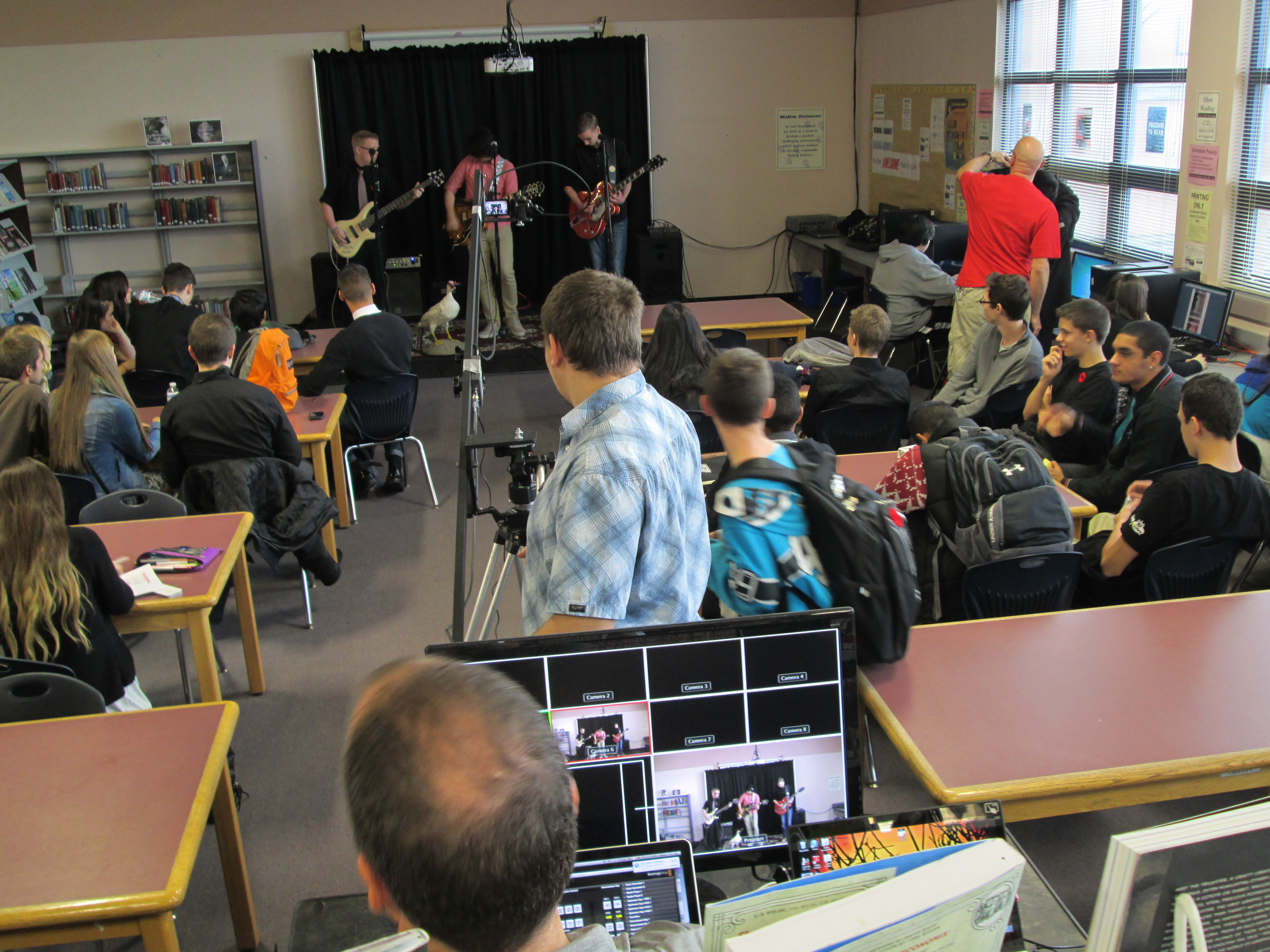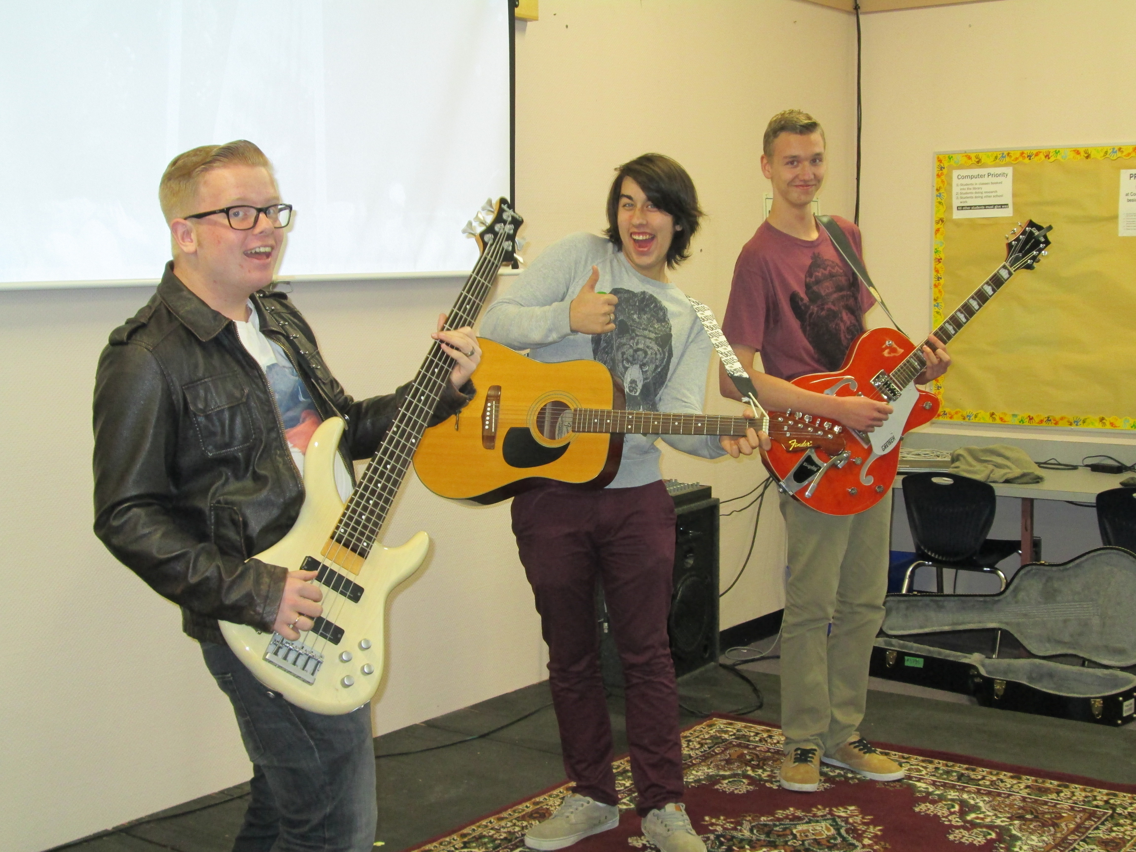 The first of in what we hope is a series of free lunch time concerts on the new school library stage went today and it was a big success!  Thanks to “Seeing in Technicolour,” a band of Lord Tweedsmuir senior students, who put on a great show.
