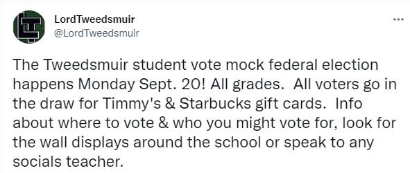 Today, registered voters go to the polls in the 2025 Canadian Federal Election. Meanwhile, all over our nation students are participating in a parallel mock election. Come down to the School Library today to cast your vote.