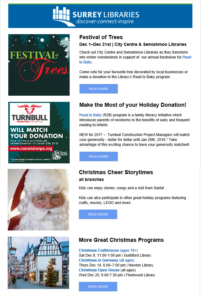 Celebrate Canadian Library Month, along with International School Library Month, this October. All libraries, including school libraries, public libraries, even “free little libraries”, are vital to society. Find out more. Visit us in person, or online at tweedsmuirlibrary.ca