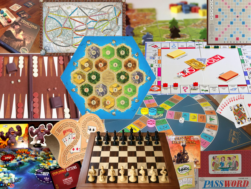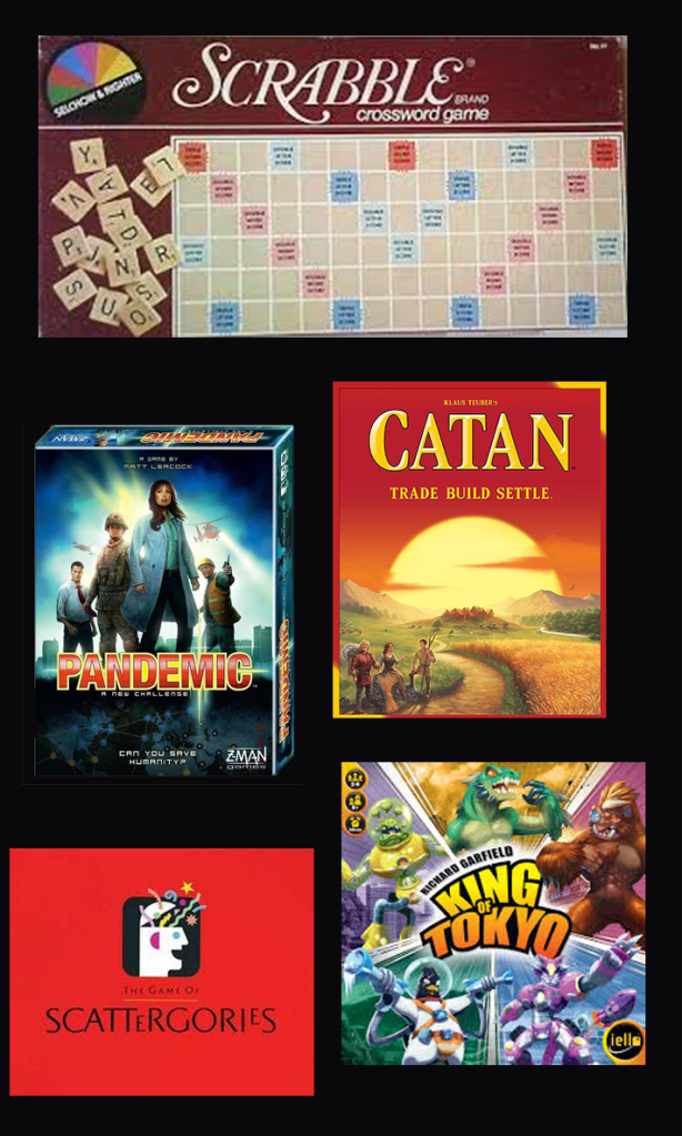 We have board games. We have board games, party games, table games, card games, dice games, role playing games, cooperative games, one player games, classic games, social games, strategy games, award winning games, word games, family games, trivia games, negotiation games, Euro games, guessing games, pop culture games, deduction games, chance games, storytelling games, simulation games, abstract games, tile games, bluffing games. We have games!
