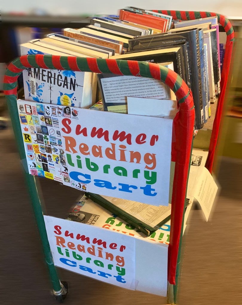 The Summer Reading Library Cart is making its way around the building. Staff are encouraged to have a look and pick up something for reading over the break!